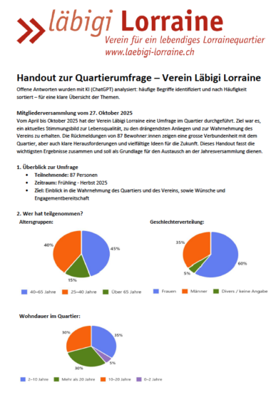 Samstag, 8. November 2025, zwischen 15.00 Uhr und 19.00 Uhr in der Baustelle, Lorrainestrasse 31 Erster offener, unverbindlicher Austausch im Hinblick auf den Betrieb unseres neuen Quartiertreffs! Kommt einfach vorbei! Wir vom Trägerverein werden vor Ort sein und ihr könnt kommen wann es euch zeitlich am besten passt. Quartiertreff Lorrainestrasse 31 • info@lo31.ch • MEHR